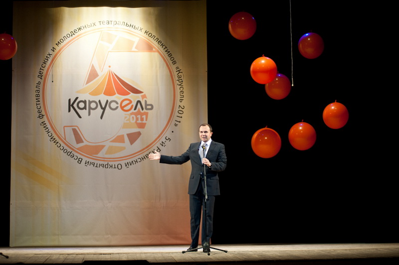 Театр начинается с вешалки, а продолжается инсталляцией, решили организаторы и порадовали гостей мероприятия большой фотовыставкой со спектаклей прошлых лет. Желающие смогли сфотографироваться на фоне фирменного «карусельного» баннера. Самые технически продвинутые ребята щеголяли по фойе с телефонами и айпадами — в зале действовал бесплатный Wi-Fi, чем активно пользовались присутствующие, забивающие твиттер сообщениями типа «Я на «Карусели», тут круто!». Поздравить школьников и всех горожан с открытием пришли министр образования Рязанской области Надежда Бушкова и начальник управления культуры и искусства администрации Рязани Андрей Кашаев. Они же и озвучили общее мнение, что фестиваль стал одним из символов культурной жизни города.