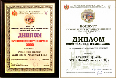 Несколько раз победителем конкурса становилась Ново-Рязанская ТЭЦ. По итогам 2009 года предприятию были вручены сразу четыре диплома, свидетельствующих высокую эффективность работы. Так, среди предприятий с численностью персонала от 500 до 1000 человек в подгруппе «Топливно-энергетический комплекс» Ново-Рязанская ТЭЦ стала победителем и награждена Золотым дипломом «Лучшее предприятие отрасли 2009 г.». В специальных номинациях ТЭЦ удостоена дипломов «За эффективную экологическую политику» и «За наиболее эффективное управление персоналом». Кроме того, станция награждена почётным дипломом «За стабильно высокие результаты», учитывая сохранение предприятием лидирующих позиций на протяжении нескольких лет.