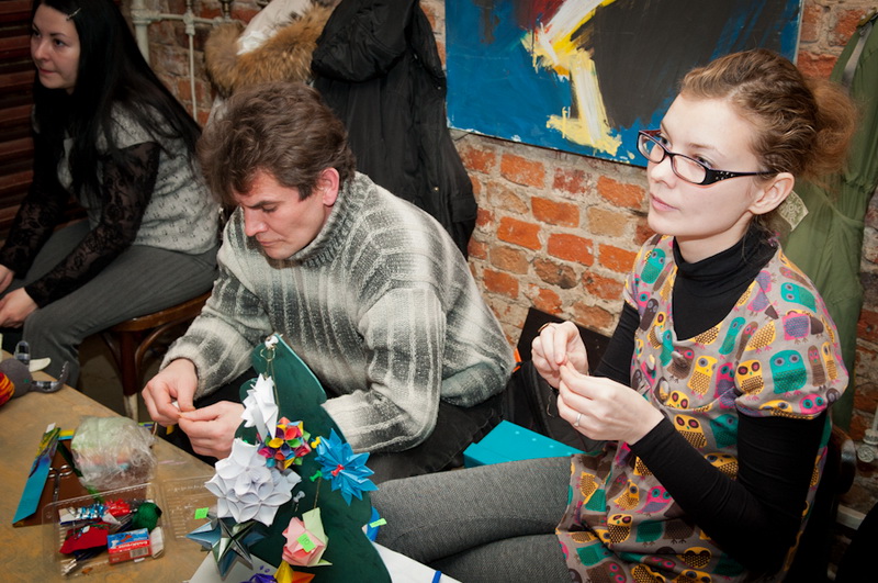 Охотней всего разбирали хенд-мейд украшения. Так уж сложилось, что основной контингент арт-базара — представительницы слабого и прекрасного пола, падкие в своём большинстве на разномастные украшения. Они начинали закупку подарков к Новому году с ублажения себя любимых. И правильно! Ведь только с хорошим настроением можно выбрать своим друзьям лучшие сувениры. А самый верный способ поднять настроение — приобрести понравившуюся цацку и тут же нацепить её на себя. Нескончаемая очередь наблюдалась у стола с текстильными игрушками, набитыми кофе и корицей. Сердечки, совы, драконы, рыбки и, конечно же, котики — ароматные сувениры пользовались большим спросом. Влёт расходилось мыло, яркие кусочки, отлитые в форме сердечек, и рукодельные открытки, хранящие тепло рук их мастера. Традиционными участниками базара стали вязаные игрушки Алёны Третьяковой. Самой популярными оказались Angry Birds, сделанные по мотивам одноимённой игры. «Злых птиц» расхватывали как горячие пирожки, с ажиотажем на них не смогли сравниться даже драконы ― символы наступающего 2012 года. Компанию и тем, и другим составили другие вязаные чудики — Снеговики, мышки, ёлочки и прочие зайцы.