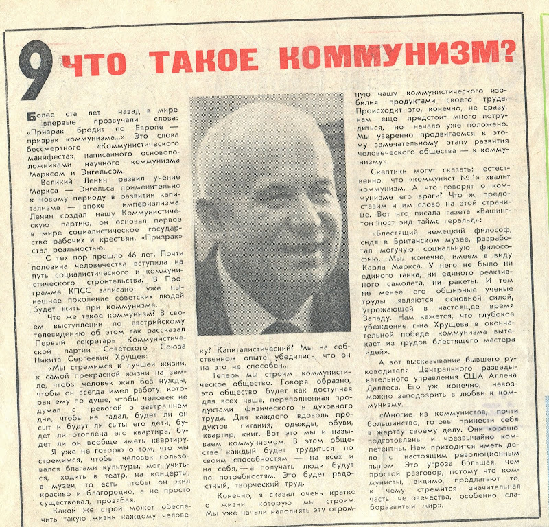 , сдали в эксплуатацию сразу после [к открытию, видать, не уложились]. Выступая на нем, пообещал совгражданам, что к в СССР создадут материальную базу коммунизма. ", – утверждал . – ".