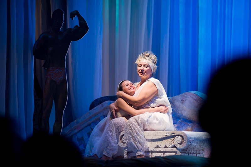 К финалу же становится понятно, что общество (на примере большой и не очень дружной семьи Диогена) имеет то правительство, которое заслуживает, равно как и наоборот. Мелкие приспособленцы, решающие сугубо личные проблемы и с удовольствием наживающиеся и пиарящиеся на беде своего ближнего, ничуть не лучше правящих верхов. Однако хохочущему над перипетиями сюжета зрителю не помешает вспомнить знаменитое гоголевское «Чему смеётесь? Над собой смеётесь!», потому как рыльце-то в пушку у каждого. На фоне этого Диоген, блуждавший с фонарём средь белого дня и искавший Человека на многолюдных площадях древнего города, конечно же, попал пальцем в небо. Человека в новом спектакле найти трудно. Ещё труднее найти здесь куклы, как бы парадоксально это ни звучало в применении к кукольному театру. Некоторое их подобие на сцене, конечно, присутствует, но играть в них никто не спешит. И этим ещё сильнее подчёркивается различие светлых и немного наивных детских спектаклей и новой жёсткой (хотя удивительно смешной и динамичной) постановки для взрослой аудитории.