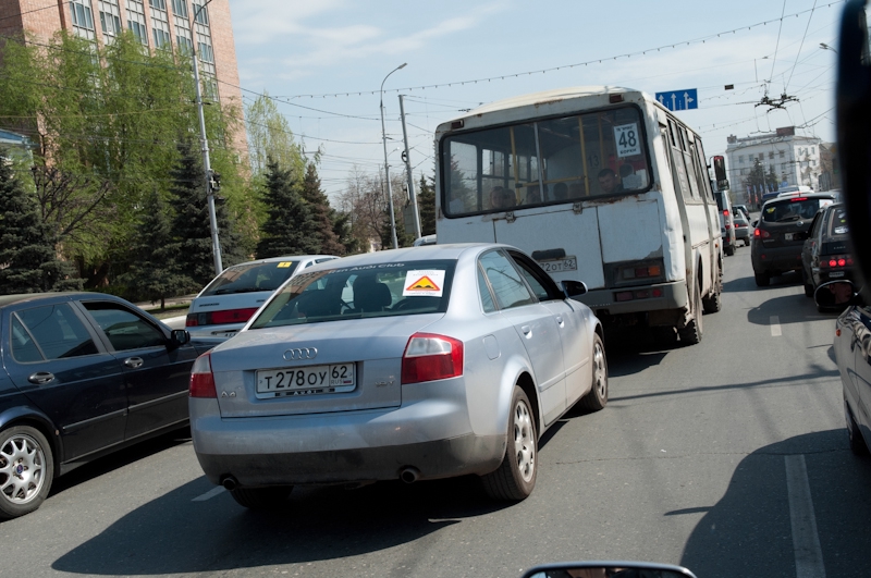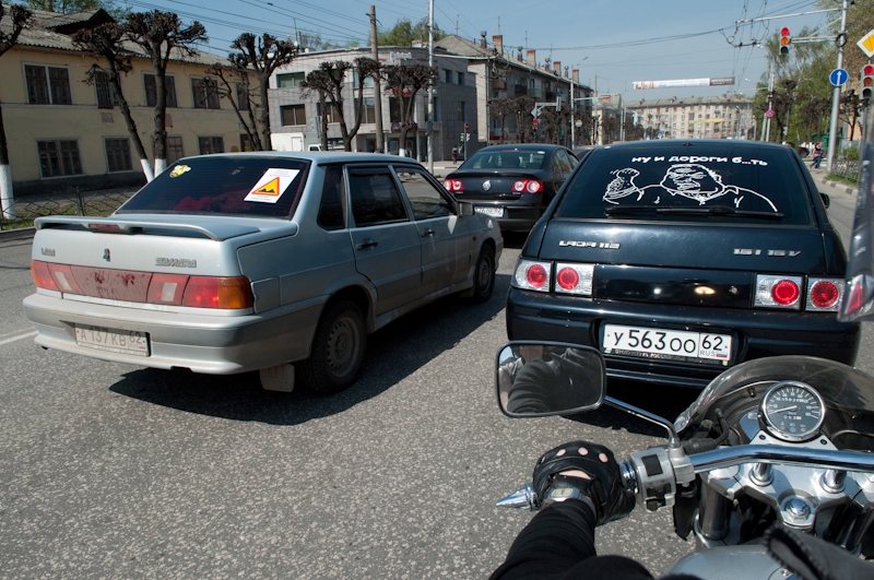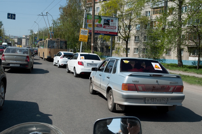 Автомобилисты ударили автопробегом по некачественным городским дорогам. Акция, прошедшая в центре Рязани, собрала 50 автомобилистов, 8 мотоциклистов, 4 роллера и несколько велосипедистов.