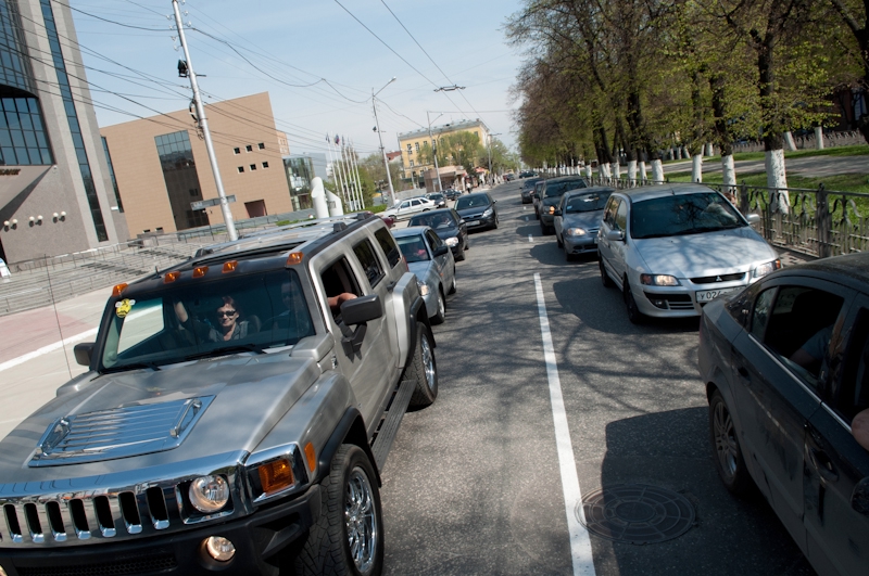 Единственное, что смущало, так это отсутствие в здании областного правительства и городской администрации хоть каких-нибудь чиновников в обед воскресенья. Однако самих участников акции это беспокоило мало. Рассерженные горожане, которые в этот день выкатились на улицу, в большей мере выпускали пар, чем задумывались над тем посылом, который они хотят своим протестом донести. Основными зрителями всего процесса стали охранники пустых госучереждений, сотрудники ГИБДД и обычные горожане, которые, к слову, и на авто, и пешком практически по всей длине маршрута поддерживали акцию автомобилистов ― кто сигналил в ответ, кто махал руками с тротуара.