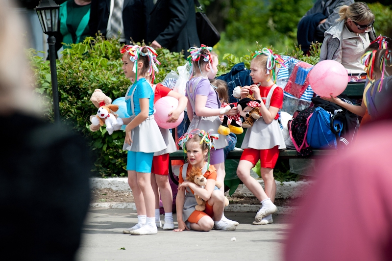 Дальше развернулась зона под названием «Рязань рукодельная», где, как не сложно догадаться, нашли себе место местные мастерицы. Разумеется, маленький базар рукоделия и хэнд-мейда не пустовал ни минуту, ведь редкая женщина равнодушно пройдет мимо украшений, мыла ручной работы, уникальных авторских кукол и разнообразных вещиц, способствующих обретению уюта в доме и улучшению по месту жительства прочего феншуя. Рукодельные мелочи были разбавлены туалетными водами из находящейся неподалеку парфюмерной лавочки, а также букетами из живых цветов от пары очаровательных цветочниц. Следом за ярмаркой хэнд-мейда на ступенях досугового центра «Былина» расположилась главная сцена «Маёвки», вторая сцена оказалась существенно дальше ― на ступенях близ циркового фонтана. Благодаря такому креативному планированию всё пространство праздника оказалось озвучено разной музыкой. У «Былины» в фаворе был ансамбль «Русский квас» с авторскими стилизациями под народные песни, танцевала детская танцевальная студия «Акварельки» и читали стихи рязанские поэты. У цирка же музыкальная программа была более современной ― тут выступала вокальная школа Эллы Хрусталевой и лауреат фестивалей Иван Миронов.
