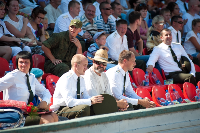 Официальные лица свой интерес удовлетворили издалека и прошли на стадион, где первым делом вручили цветы вдовам и матерям военнослужащих, погибших при исполнении своего долга.