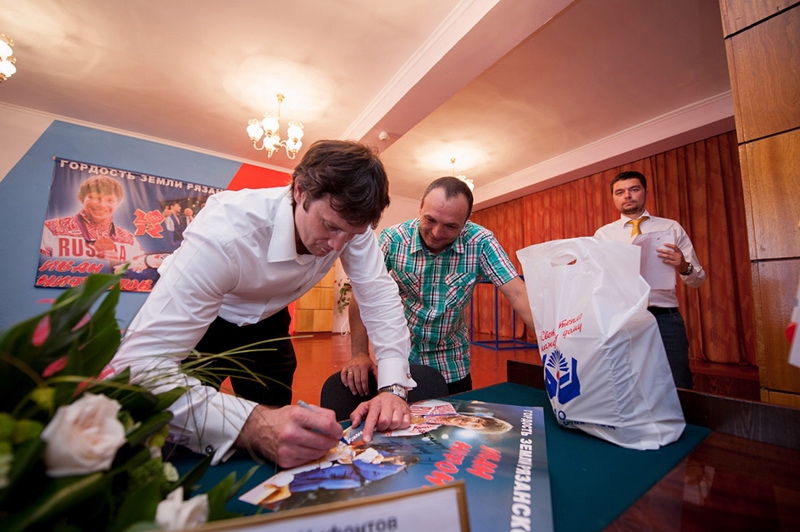 Дмитрий Сергеев рассказал о том, что для него ощущения от бронзовой медали, добытой им в борьбе на татами в Барселоне, и от лондонской бронзы его ученика Ивана Нифонтова — это две большие разницы. В роли тренера, на трибуне находиться значительно труднее : хочется помочь, поддержать спортсмена, а вынужден сидеть и «подпрыгивать на одном месте». Председатель совета директоров ООО «Ново-Рязанская ТЭЦ» Анатолий Шестаков поделился своими наблюдениями о технике Ивана Нифонтова. Сам тренер по дзюдо с 20-летним стажем, Анатолий Зарибзянович удивляется, как Иван, попавшись на приём и падая, умудряется не только устоять на ногах, но и неожиданно бросить соперника в ответ.