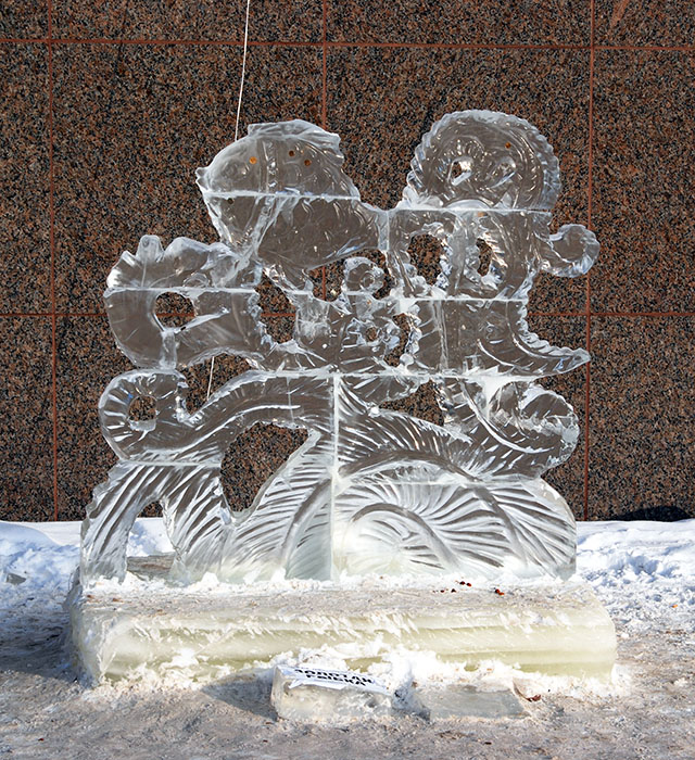 Вот эти скульптуры, стоят у Прио-банка. если еще не растаяли.