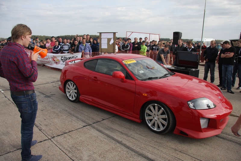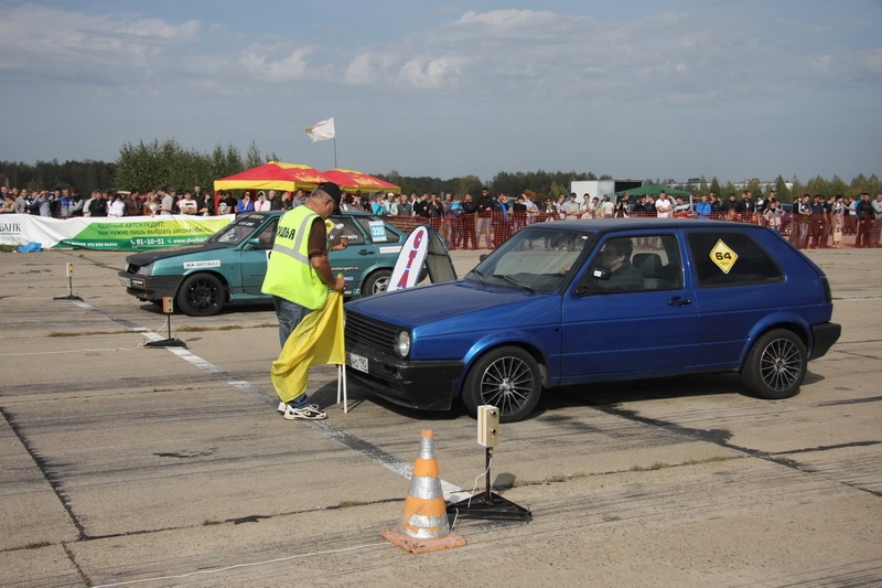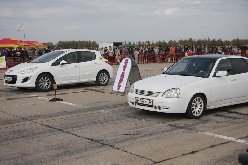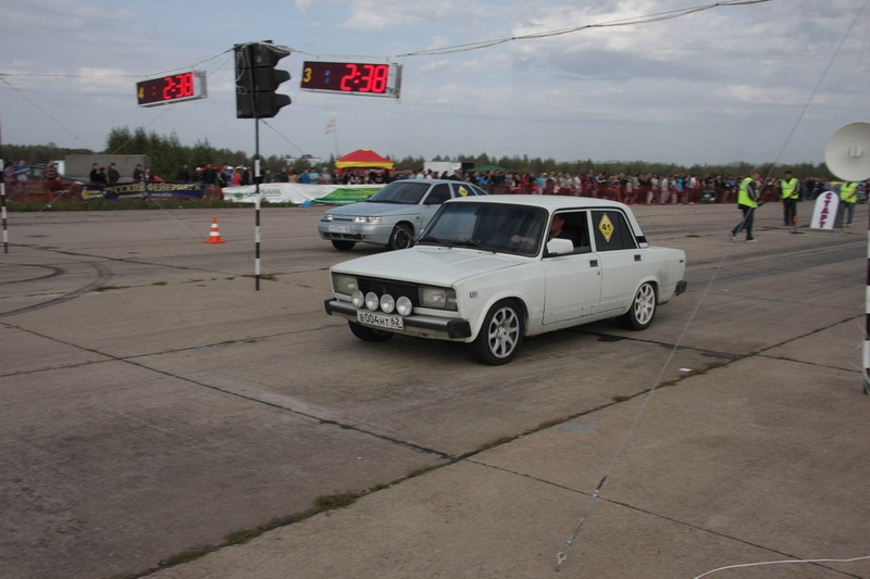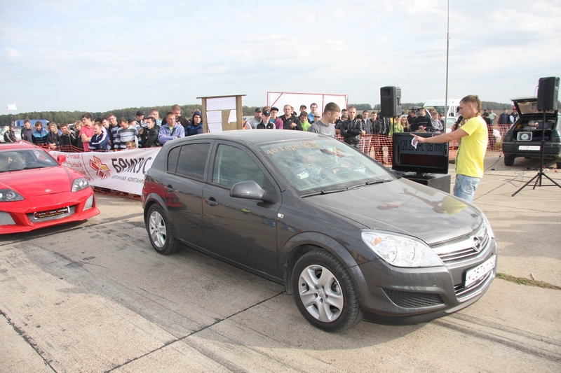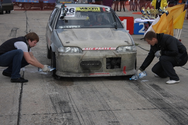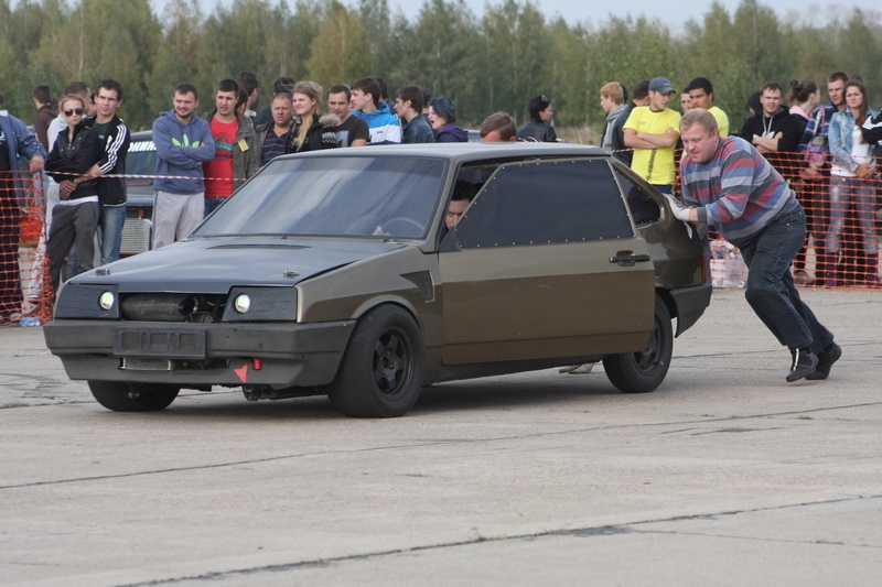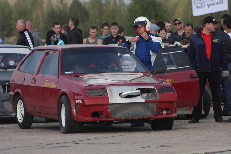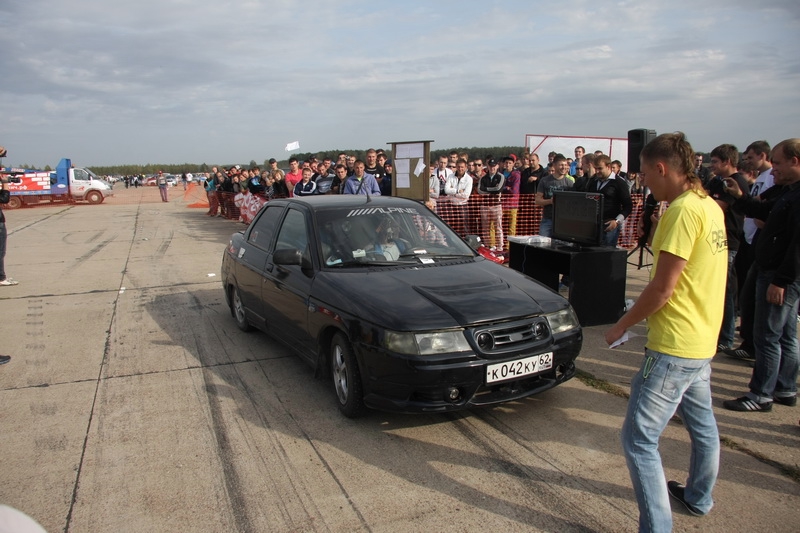 — Внутри машины каркас безопасности из труб, автоматическая система пожаротушения, пятиточечные ремни безопасности, специальное кресло и даже тормозной парашют. Эта машина — двукратный чемпион России в своём классе 2010 и 2011 годов. Рекордное время — 10,6 секунды, но это на специальной — проклеенной (покрытой специальным составом) — трассе. На бетонке в Протасово мы показали 11,2 секунды.