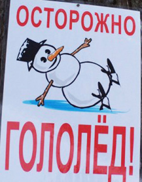 Другой вид профилактики зимнего травматизма — посыпание дорожек и крылечек солью, песком, гравием и прочими антискользящими материалами. Женщинам следует отложить обувь на высоких каблуках до окончания гололеда, а тем, кто может без особого напряга остаться дома, лучше не искушать судьбу, помнить о размерах пенсии и стоимости протезирования тазобедренного сустава. Хочется надеяться, что выполнение этих нехитрых рекомендаций поможет пережить сложное время гололёда с наименьшими потерями, а лучше — вообще без них.