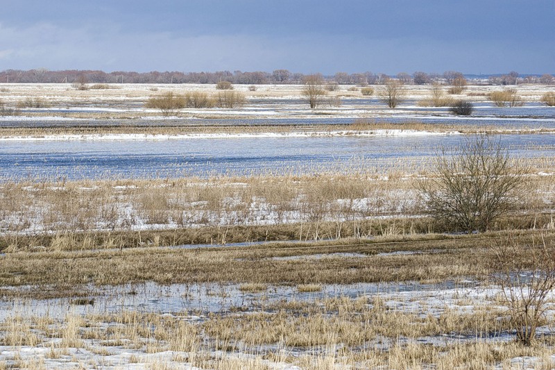 Весну принесли не чибисы, не скворцы и не зяблики. Она сама пришла с дождем. С утра то лило, то моросило, и так до обеда. Внезапно подул сильный и теплый юго-западный ветер, все тучи исчезли за полчаса. В лучах ослепительного солнца я рысцой побежала в поле, и застыла в изумлении. Снега — как не бывало, и кругом вода!