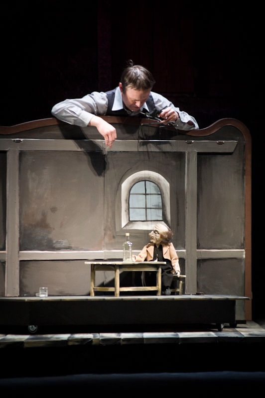 С собой на рязанскую сцену режиссёр захватил главного художника Белорусского театра кукол Валерия Рачковского. Данный творческий дуэт хорошо известен не только у себя на родине, но и в Европе. А в России их работа (чеховский «Вишнёвый сад» в постановке мытищинского театра «Огниво») пару лет назад была даже номинирована на «Золотую маску». Кроме того, в дружественной делегации засветился Павел Кондрусевич, ответственный за музыкальное оформление. Одним словом, новый рязанско-белорусский спектакль имел все основания интриговать публику ещё задолго до премьеры. Выбор произведения оказался за гостем. Представить, что рязанский коллектив взялся бы за Фёдора Михайловича самостоятельно, довольно сложно. Пушкинский «Пир во время чумы», «Маленький принц» Экзюпери, булгаковский «Мастер и Маргарита»… (тоже, кстати, с приглашённым режиссёром) совпал с господствующими мистико-романтическими настроениями взрослой сцены театра кукол. А вот угрюмое, тяжёлое и болезненное «Преступление и наказание» выглядит тут белой вороной.