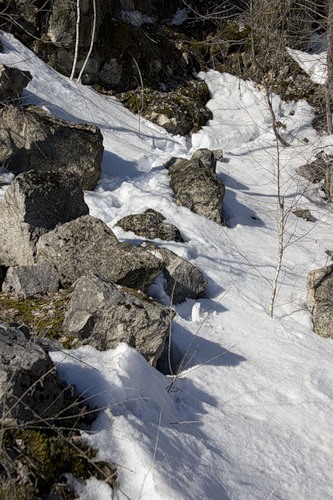 Дело в том, что сначала снег там подтаял и потек, а пото ударил мороз, потом вообще текло ручьями, и еще разок подморозило, а потом по этому как-то надо было ходить.
