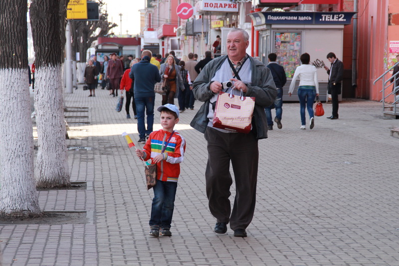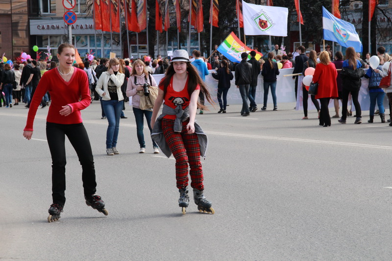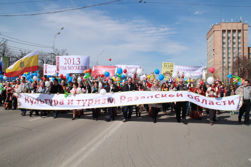 За трудолюбивыми и смело ступающими колоннами рязанцы наблюдали с неприкрытым удовольствием: радоваться солнышку в первомайское утро устремились организованные семейные и не очень группы, велосипедисты/роллеры и работники сферы обслуживания магазинов, расположенных в центре Рязани. Чего не хватало, так это цветов: припозднившаяся весна лишили вольногуляющих тюльпанов, а фотографов — традиционных цветочных снимков по ходу колонного шествия.