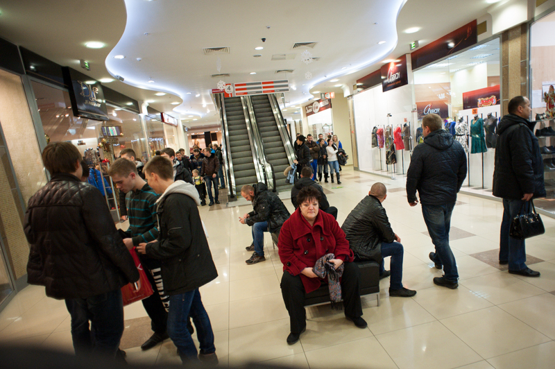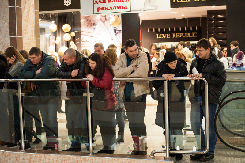 Самые ответственные хозяева бутиков махнули рукой и взяли курс на иностранные традиции. «La Faminite», «Galta», «Carlo Pazolini» и «Яшма» решились на 70-процентные скидки, чем вызвали в своих магазинах ажиотаж. Принарядиться к предстоящему Новому году, ухватить сапоги к наступающей зиме или прикупить новые бусики по случаю — приступу шопоголизма оказались подвержены даже те, кто собирался просто скоротать пятничный вечер в шумной компании. Часть публики целенаправленно пришла за покупками — эти товарищи появились в ТРЦ сильно заранее, нетерпеливо переминались с ноги на ногу у входа в облюбованные торговые точки, ожидая официального старта чёрной пятницы, быстро хватали давно присмотренные товары и с довольным видом отправлялись по домам с ворохом пакетов и коробок. Другие посетители, особенно представительницы прекрасного и падкого до спонтанных покупок пола, ходили в поисках «чего-нибудь», курсируя между магазинами и тщательно сверяясь с «путеводителем» по «Виктории Плазе» в виде листовки с перечислением скидок и специальных предложений. Позабытые мужья заняли все лавочки и столки в кафе и с философским спокойствием взирали на разгорячённых спутниц, пытающихся ухватить удачу за хвост в окружающей кутерьме.