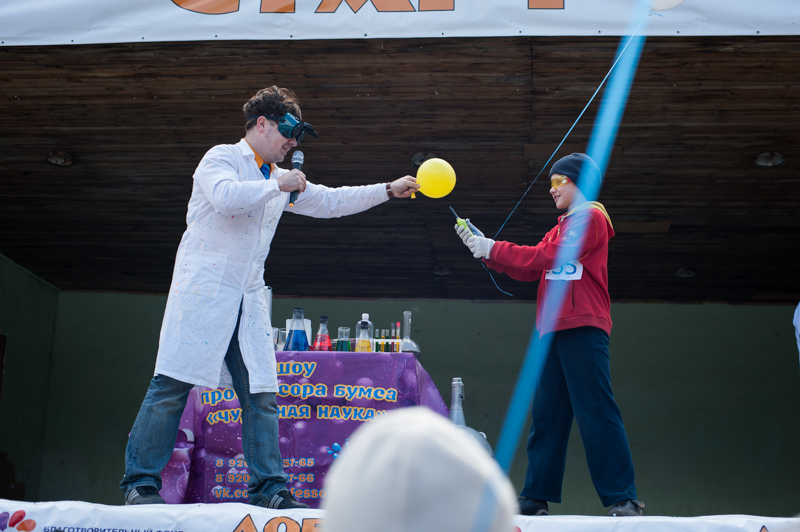 Забеги предварялись развлекательной программой — для маленьких участников в Центральном парке культуры и отдыха выступал профессор Бумс со своим химическим шоу. Дети получили возможность под строгим контролем учёного смешивать различные вещества и получать большие «ба-бахи» — на сцене постоянно что-то взрывалось, гремело и дымило к величайшей радости присутствующих. Зрителей постарше развлекал семикратный рекордсмен Книги рекордов Гиннесса и 22-кратный рекордсмен России Александр Муромский. В шоу-программу знаменитого тяжелоатлета входят такие зрелищные номера как сгибание сковородки голыми руками и надувание грелки до её полного уничтожения. Поднявшись на сцену, Муромский сразу же извинился, что рвать грелку будет в очках: