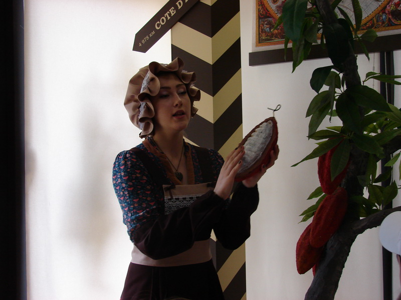 После того, как маленькие гости праздника отведали угощенье, они отправились в «Большое путешествие в мир шоколада». Всё началось с экскурсии, из которой ребята узнали, как и где растёт основа для шоколада — какао-дерево с его странноватыми плодами, а также познакомились с краткой историей распространения шоколада в мире. Девушка-шоколадница, она же экскурсовод, рассказала про древний какао-напиток, появившийся три тысячи лет назад на полуострове Юкатан, его трансформацию из откровенно горького в сладкий напиток, а затем из жидкого состояния в твёрдые плитки и о дальнейшем триумфальном завоевании шоколадом любви гурманов всего мира.