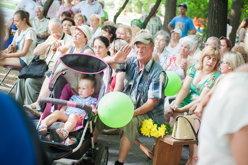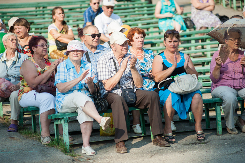 Детский городок был, как и всегда, набит до отказа теми, кому это положено по возрасту, а рядом с главной сценой фестиваля разместились немногочисленные зрители из числа пенсионеров и пенсионерок. С эстрады гремели русские народные песни и танцевальные шлягеры прошлых лет — желающих сидеть целый вечер на солнцепёке всё равно было не ахти. Намного большую публику собрала сцена в Наташином парке, укрытая от солнца густыми кронами деревьев. Тут прошёл мини-фестиваль «Бабушкины танцы & дедушкины песни», а также конкурс частушек. Как ни странно, послушать озорной русский фольклор пришли люди всех возрастов. Неподалёку играл рязанский духовой оркестр и проходили забавные состязания для маленьких зрителей. Однако гвоздём развлекательной программы Наташиного парка стала ростовая кукла упаковки майонеза. Человек-майонез, несмотря на свою рекламную направленность, оказался звездой фотосессий и любимцем местных девушек.