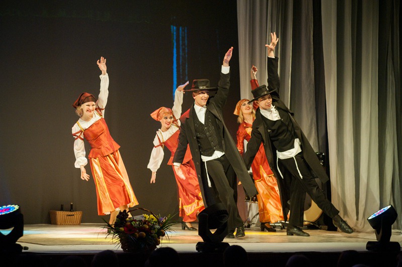 Заместитель председателя правления Прио-Внешторгбанка Геннадий Дронов тоже не стал напускать не себя ложную серьёзность и подарил виновникам торжества уникальный рецепт чая, главным компонентом которого оказался коньяк. Остальным поздравляющим говорить скучные поздравления и вовсе было не с руки. Артисты Рязанского театра драмы вручили юбилярам сапоги, подчеркнув, что Скиданов и Захарчев — два сапога пара. Театр на Соборной пришёл в гости едва ли не всей труппой и устроил караоке со зрительным залом — хором публика исполнила Гимн любви из спектакля «Дульсинея Тобосская», который написал Сергей Захарчев специально для рязанского ТЮЗа. А девичье трио из «Перехода» проголосило оду на музыку из мюзикла «Чикаго», намекнув, что 50 для мужчины — это не тот возраст, в котором стоит забывать о восторженных женских вздохах. Одним из самых ярких и смешных номеров стало — совершенно неожиданно для публики — поздравление осветительного цеха. Местный художник по свету Жорж Горозецкий предстал перед взором зрителя в свете рампы, продемонстрировав настоящие чудеса дрессировки фонарей. Гвоздём выступления стал смертельный номер «Голова в пасти фонаря», после чего новоявленная звезда сорвала заслуженные овации, а зал взорвался искренним хохотом.
