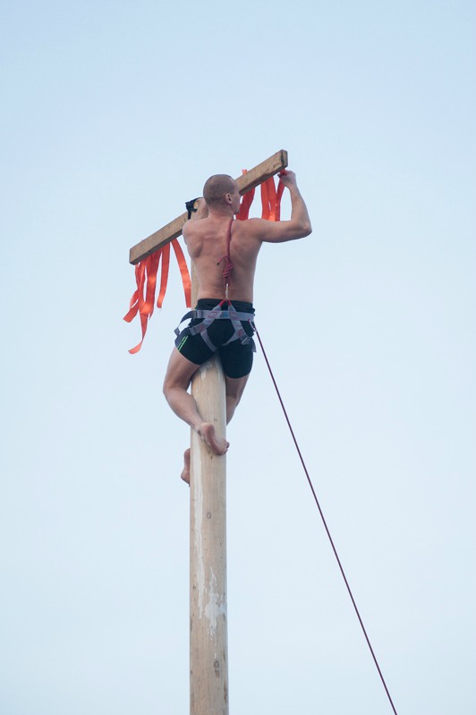 Но какие бы спортивные испытания не готовили гостям организаторы, излюбленным неизменно остаётся «Ярмарочный столб». Самые гарные молодцы приступом и нахрапом берут десятиметровый столб, чтобы добраться до верха, оторвать с макушки вожделенную ленточку и получить законный приз из рук председателя правления Прио-банка. Толпа, а взятие ярмарочного столба собирает неописуемое количество зрителей, болеет за претендентов, как за своих. Большей любовью, конечно же, пользуются юноши помоложе, мускулатурой побольше и ликом краше — покорение столба на радость женской половине публики происходит в нижнем белье. Есть тут и свои любимчики, кое-кто из участников на данном соревновании уже собаку съел и год из года отхватывает стоящие призы: автомойки, аэрогрили, мультиварки.