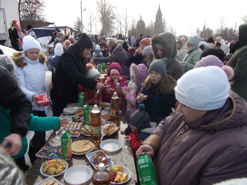 После обязательного сожжения чучела Масленицы заместитель директора школы по учебно-воспитательной работе Нина Усанова пригласила всех в столовую, где школьные кулинары приготовили традиционное для этого дня угощение — блины. Древние славяне считали блин символом солнца: он, как солнце, круглый, жёлтый, горячий. Люди верили, что, съедая блин, они приобретают частичку солнечного могущества и силы.