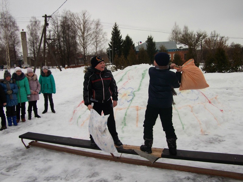 Жители и гости села стали свидетелями и участниками искромётно-зажигательной праздничной программы, состоящей из номеров художественной самодеятельности и всевозможных состязаний в силе, ловкости и меткости. В соревновательной программе было перетягивание каната, катание на санках и ледянках, метание снежков в цель, бой с мешками на бревне. Силачи соревновались в поднятии одно- и двухпудовых гирь. Победителям вручались призы.