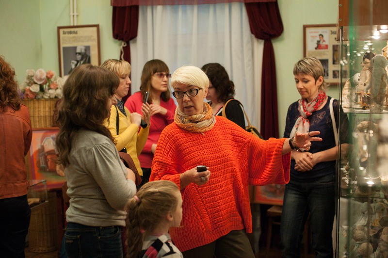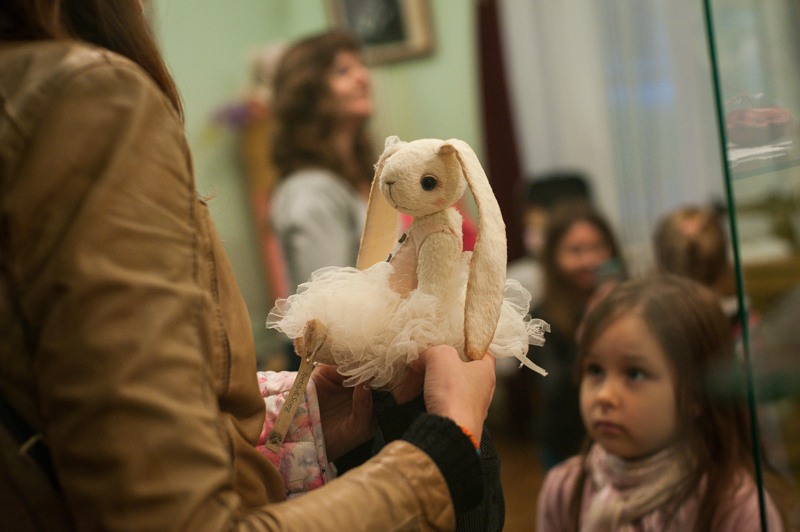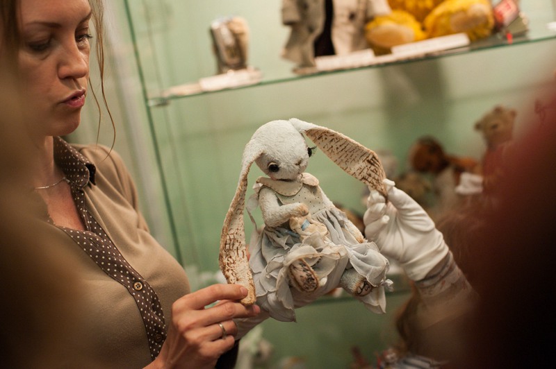 Из советского прошлого гости мероприятия отправились дальше вглубь XX-XXI веков — на Ночи музея прошла большая экскурсия по teddy-выставке. Рязанский teddy-мастер Снежанна Корнина раскрывала главные секреты легендарных плюшевых медвежат. Лекция началась с того, что медвежья мама раздала зрителям белые перчатки, раскрыла витрины и пригласила всех желающих лично познакомиться с удивительными коллекционными игрушками. Несмотря на то, что здешние звери являются так называемым новоделом, назвать их современными никак нельзя. Мало того, что они сшиты по образцам антикварных игрушек, так и материалы — мохер для шкурки, ткань для одёжек, аксессуары и пищалки — являются свидетелями зари прошлого века. На одного из медведей пошли куски старинной скатерти, на другого зайца — вытертый до лысых проплешин, вручную прокрашенный коврик с оленями. Среди экспонатов оказался медведь Андрея Тарковского. Найден он был случайно. Однажды Снежанна приехала в рязанское село Мясное, где знаменитый режиссёр купил дом с участком, а ныне функционирует его дом-музей. В углу она увидела старого, довольно потёртого и затасканного плюшевого медвежонка и взяла его на реставрацию. Оказалось, подобные игрушки выпускались в Германии в 1930-х годах, возможно, в качестве военного трофея он прибыл в нашу страну и со временем поселился в Мясном. Сегодня отмытый, вычесанный и довольный медведь украшает экспозицию, а позже отправится к себе домой.