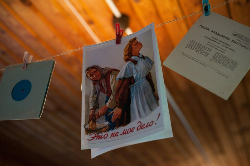 Путешествие в советское прошлое страны состоялось на веранде музея — многие присутствующие с удивлением узнали, что таковая имеется — под руководством преподавателя Рязанского государственного университета, доктора наук Александра Соловьёва и при помощи студентов факультета культурологи. Здесь развернулась конструкция из авосек — плетеных сумок времён Советского союза с типичным их содержимым. Чтобы во время красе оценить экспозицию, авоськи предлагалось щупать, перебирать, открывать и даже нюхать. Стеснительность зрителей — воспитание не сразу позволило участникам пускать в год носы и руки — быстро побороло обещание подарков тем внимательным зрителям, которые среди дефицитных апельсинов, пластмассовых пупсов и пластинок «Машины времени» смогут отыскать «случайные» вещи других эпох. Здесь же развернулась игровая зона. Все желающие смогли поиграть в русское лото, домино и фантики, попытаться собрать кубик Рубика или посидеть над настольными играми-бродилками. Параллельно на экране транслировался художественно-документальный фильм об истории ГУМа. Как рассказал Александр Соловьёв, лента, снятая в 1954 году, удивила даже специалистов. Чего стоит тот факт, что в огромном обувном отделе главного магазина Страны советов, оказывается, работал… рентгеновский аппарат для точного подбора обуви по ноге.