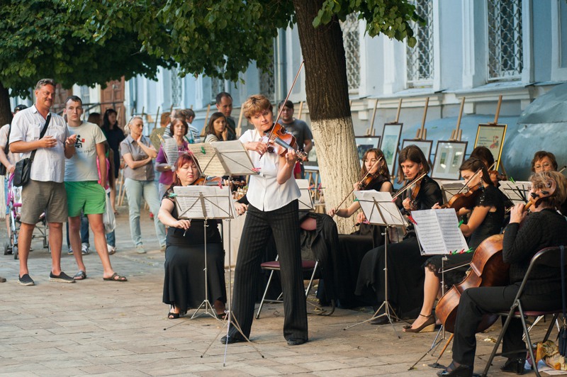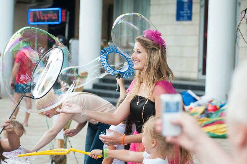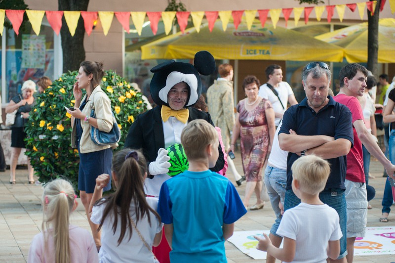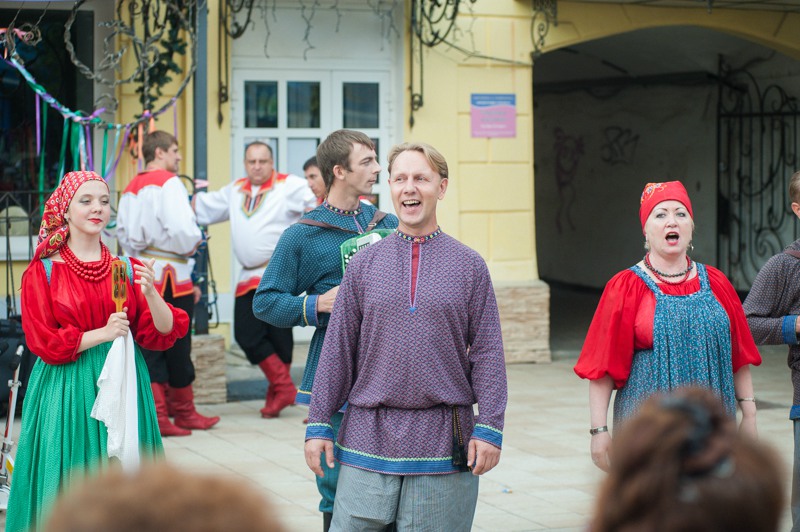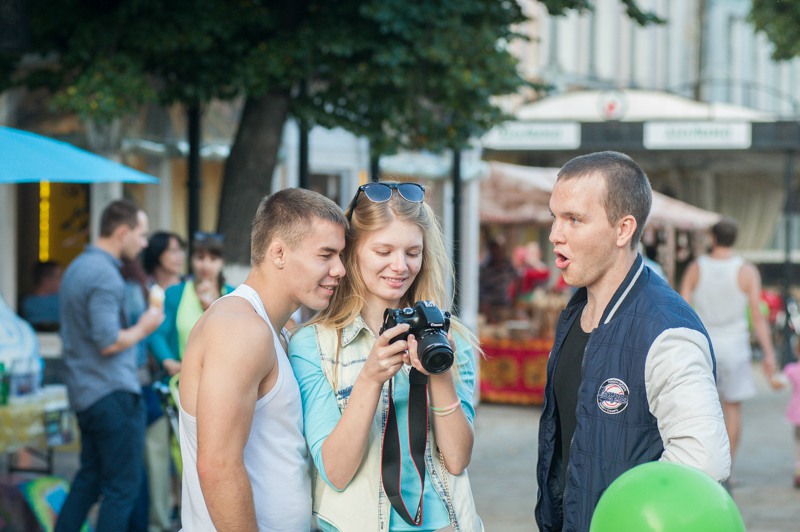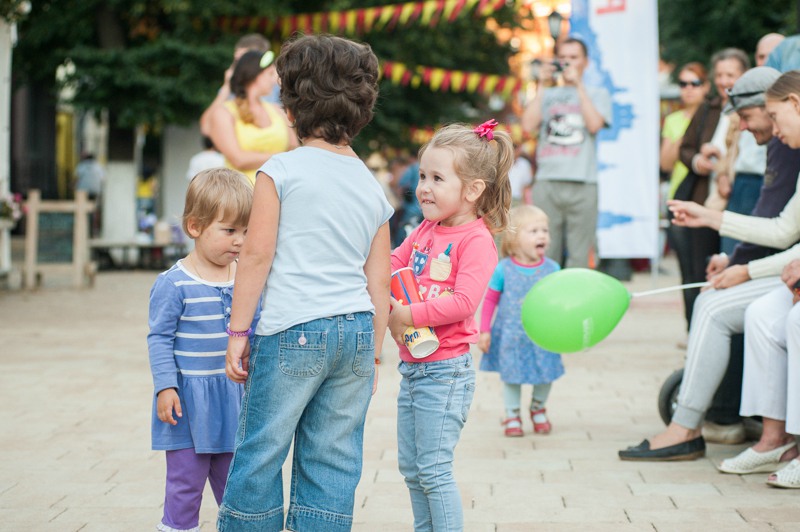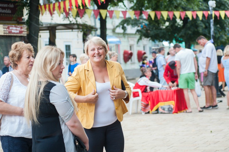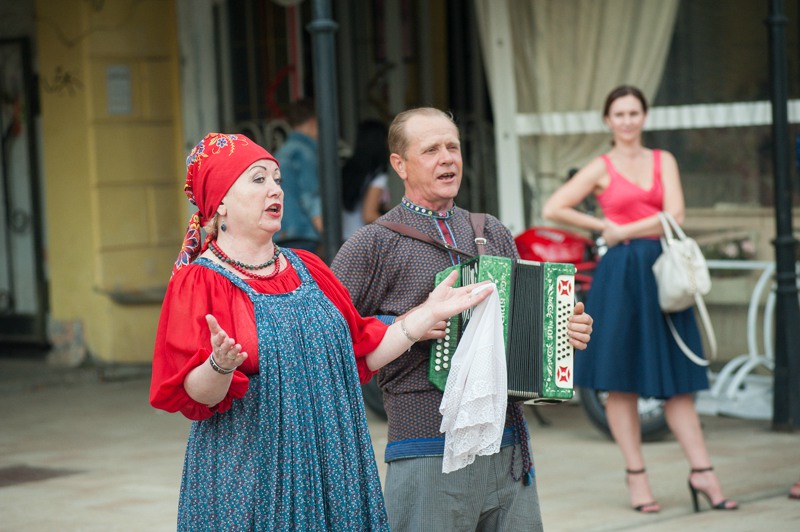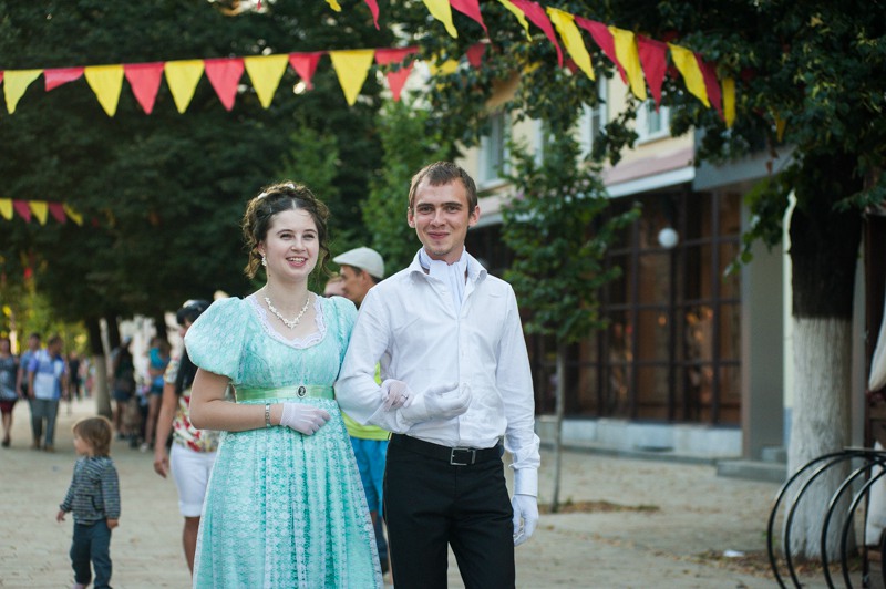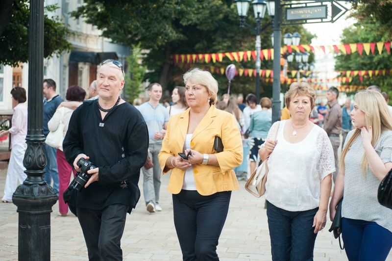 Лёгкую ностальгическую нотку привнесли воспитанники студии исторического танца «Белый балъ». Пары в роскошных нарядах прошлых эпох неспешно прогуливались по Почтовой — дамы обмахивались веерами, кавалеры покупали у цветочниц крохотные букеты для своих избранниц. Прикоснуться к ожившим сказкам и поддаться романтическому флёру мог каждый желающий — современные красавицы наперебой фотографировались с галантными господами при эполетах под звуки камерного оркестра Рязанской филармонии. К отдыхающим примкнули и официальные лица города: так, начальник управления культуры горадминистрации Евгения Власова гуляла с трогательным букетом в руках, а заместитель главы горадминистрации Лариса Крохалёва демонстрировала ловкость и меткость в игре в дартс.