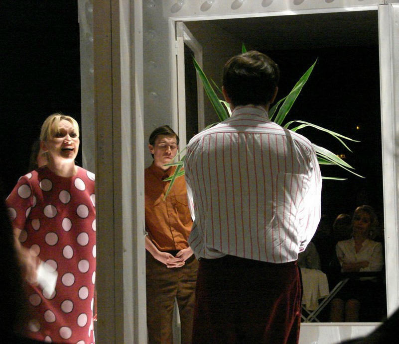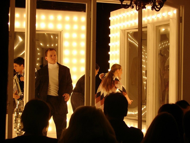 Как уже говорилось, на протяжении всего спектакля на сцене царят шестидесятые, маркированные через массу точных деталей. Но в самом финале, в сцене примирения, Митя приносит Кате в больницу передачу в привычном для нас всех пакете-маечке — какие выдаются в любом современном супермаркете. С этим белым пакетом в руке и застывает в сгущающейся темноте Катя, без конца повторяя «Я скучаю по тебе, Митя!», и обыкновенный полиэтиленовый пакет становится чем-то вроде мостика между ушедшей эпохой и сегодняшним днём.