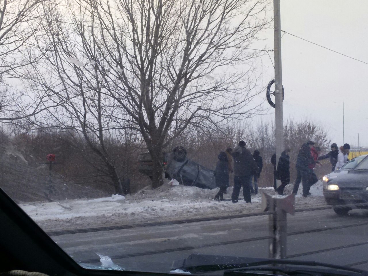 На Северной окружной дороге в Рязани автомобиль вылетел на обочину и перевернулся.