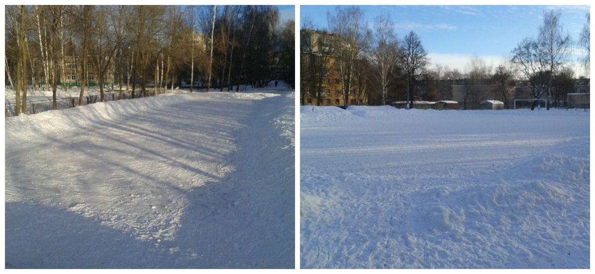 60+61 школа - 1/2 коробки для катания. и стадион с лыжней.