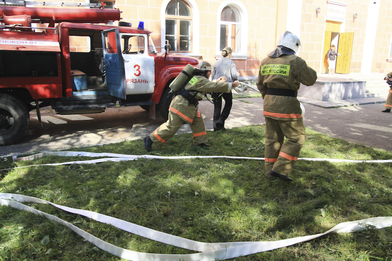 В качестве одной из мер профилактики пожаров в этом году было решено провести серию учебных ЧП в школах Рязани. Пока что участвовать в подобных учениях вызвалась только одна школа. 4 сентября в гимназии №5 ГУ МЧС РФ по Рязанской области. На них были приглашены руководители всех школ Рязани, представители городского управления образования во главе с Татьяной Пыжонковой. Вводные учений: на четвёртом этаже гимназии, в компьютерном классе, расположенном в угловой части здания, произошло возгорание. К моменту сигнала тревоги, пожар получил вторую категорию сложности. Преподавателям гимназии было необходимо вовремя сообщить о пожаре в дежурную часть и эвакуировать детей на школьный стадион.