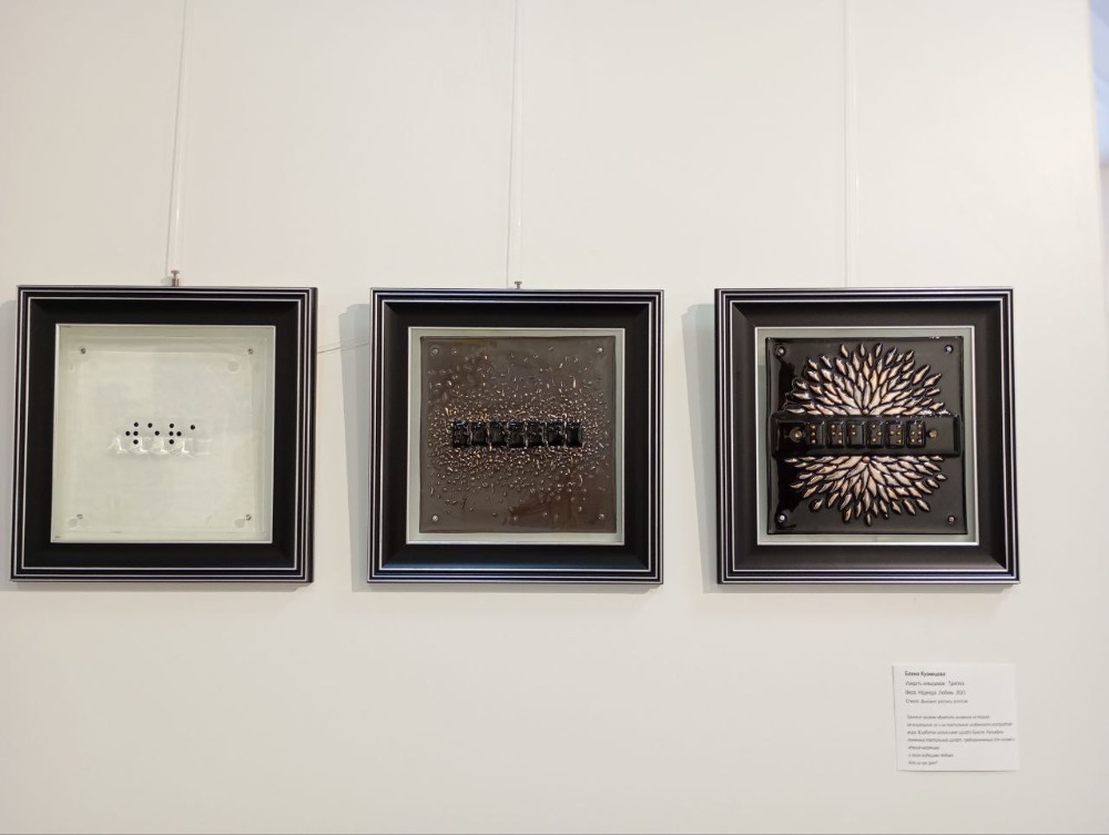 В триптихе Елены Кузнецовой «Увидеть невидимое» использован шрифт Брайля. Триптих призван обратить внимание не только на визуальные, но и на тактильные особенности восприятия мира.