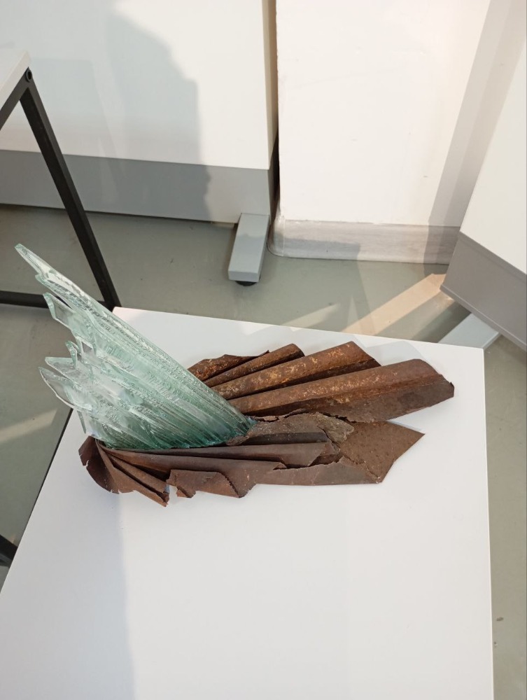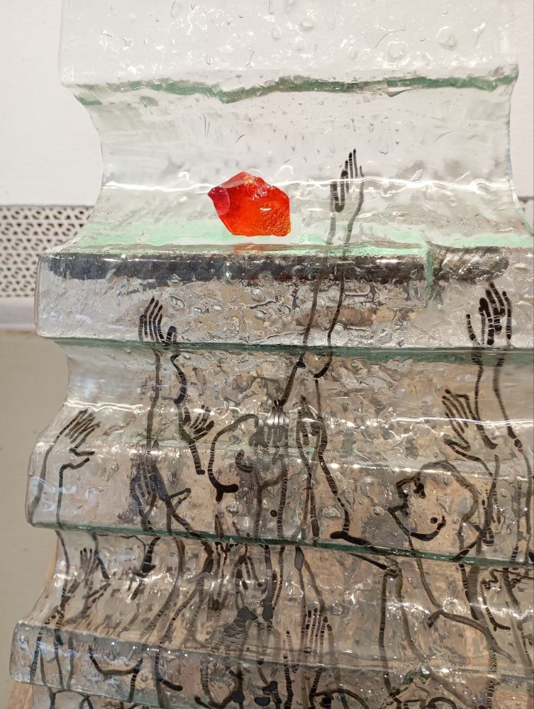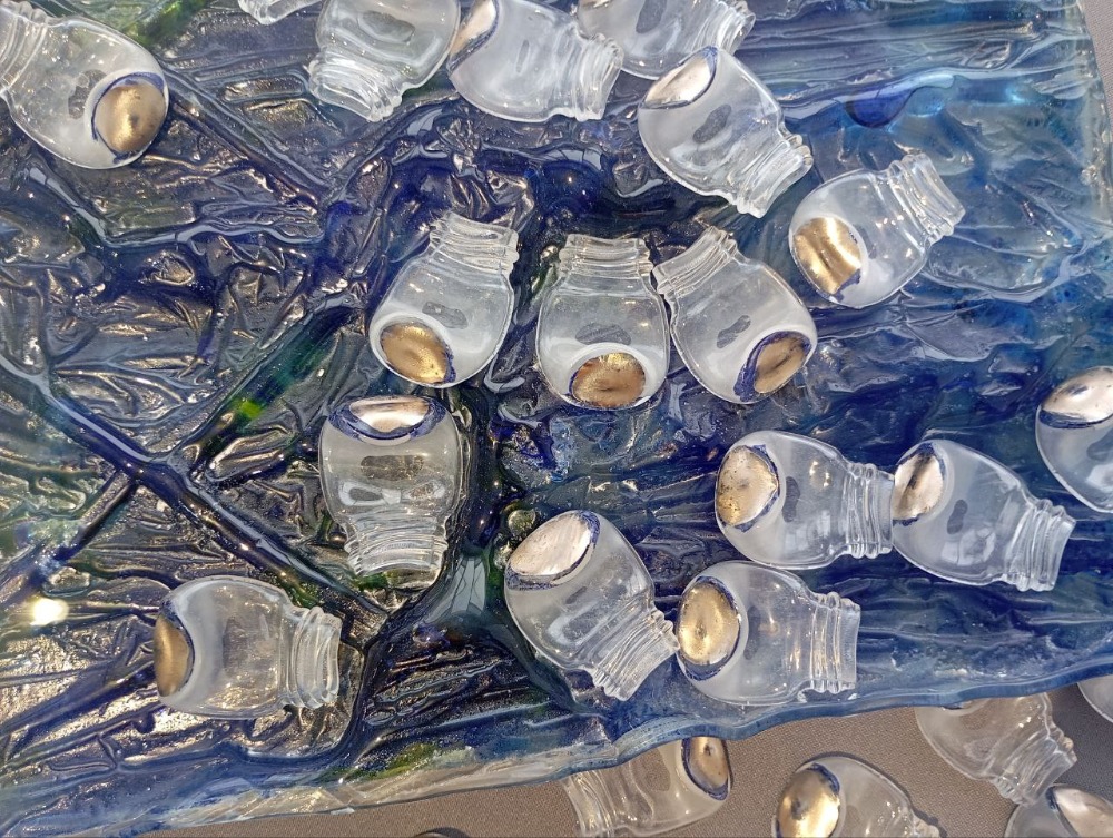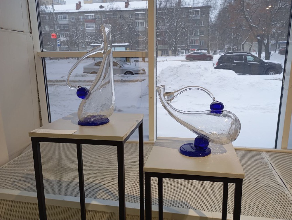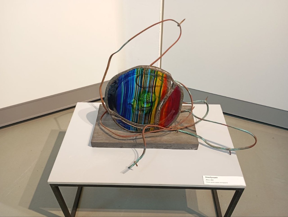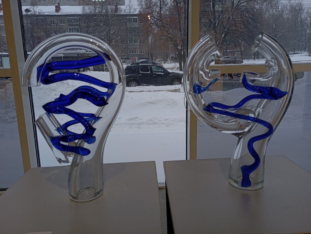 На выставке в Рязани фигуры из стекла сочетаются с глиной, деревом, золотом, металлической сеткой и даже папье-маше.