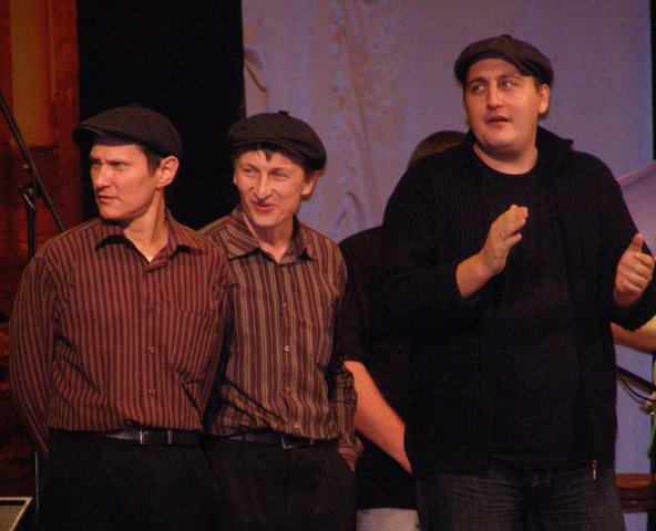 А в антракте народ прямо в фойе развлекал "Парнас". И еще - я подошел к столу, где лежали футболки с картинками, и оказалось, что в бывшем ГСКБ на Есенина можно сделать такие футболки с любыми изображениями (какие принесешь) примерно за 500 рэ.