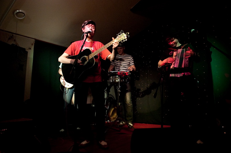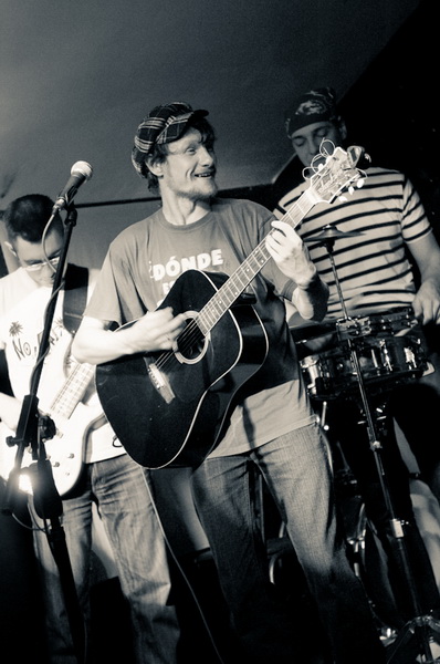 Первое отделение творческого вечера закончилось ровно в тот момент, когда мозги присутствующих были готовы вскипеть. Пять минут для перекура и попыток привести в порядок внутреннее содержимое черепной коробки — и на сцену вышла «Свадьба в Малиновке». Лидер и вокалист группы Сергей Пухов никогда не претендовал на знание десятков иностранных языков, не изобретал навороченных литературных стилей и не стремился на страницы Книги рекордов Гиннеса. Но именно к этой простоте и потянулись люди, изнурённые одарённостью первого творческого дуэта. Пух и компания подготовили для зрителей испаноязычную программу известных и очень известных песен. И пусть произношение вокалиста не грешило безупречностью, зрители ему это с лёгкостью простили.