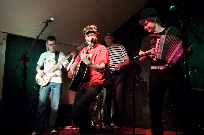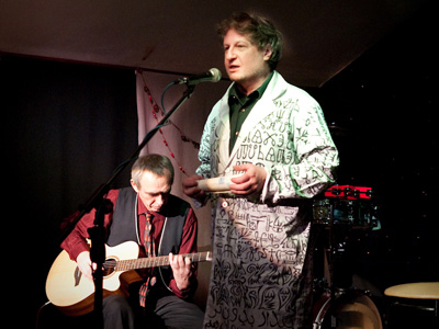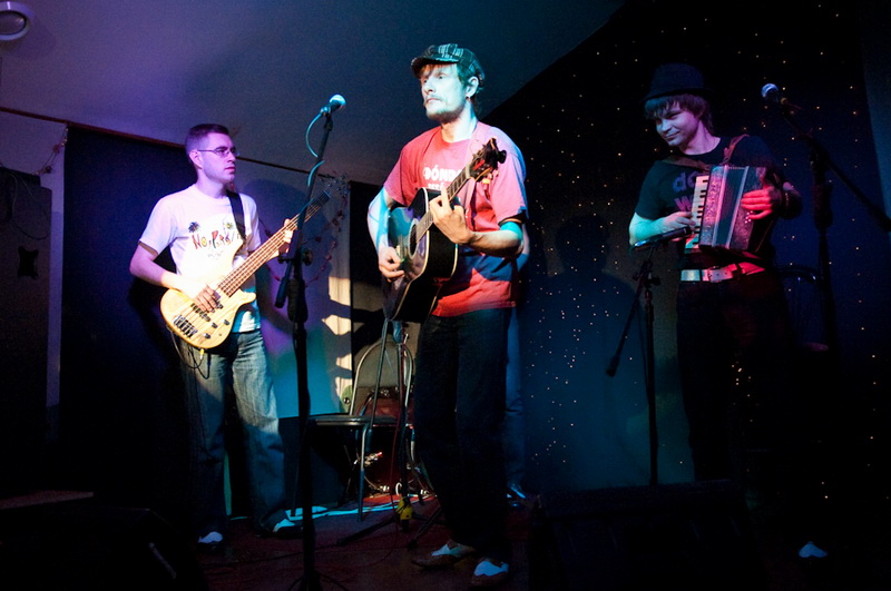 В Рязани состоялся музыкально-поэтический вечер, виновниками которого стали полиглот и поэт Вилли Мельников, гитарист Константин Панкратов и фокстрот-трень-брень-бэнд «Свадьба в Малиновке».