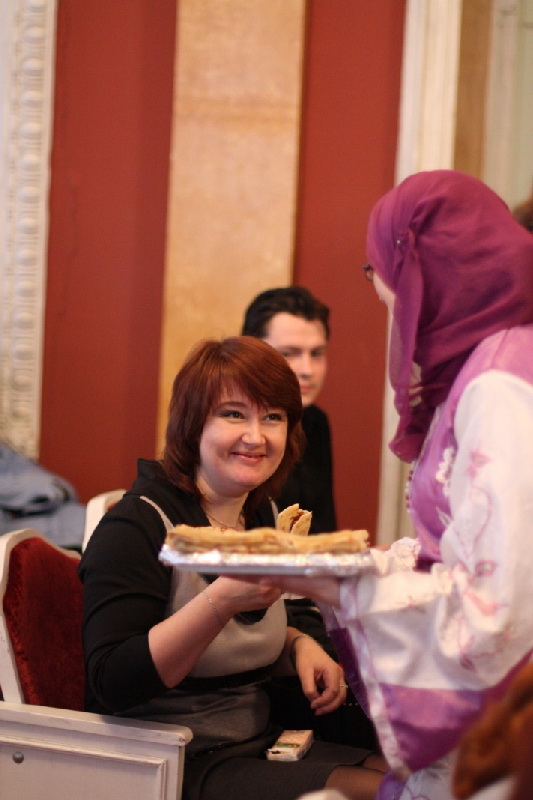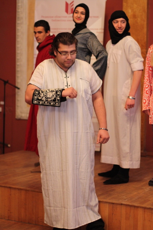 Знакомство с восточной культурой завершилось живым неформальным общением. Иностранные студенты рязанских вузов исполнили несколько песен на арабском, в том числе всеми любимую «Аишу» и показали как наряжаются в восточных странах на праздники и прогулки. После того, как зрители увидели настоящую марокканскую одежду, они отведали и марокканской пищи. На стол подали квадратные блины — малави, приготовленных из мокко, кукурузы, оливкового масла, соли и воды, а также своеобразный джем «амлю» из арахиса, мёда и оливкового масла. А вот уж кому повезло больше всех, так это кофеманам, ведь запивать арабскую кухню пришлось настоящим кофе, специально привезённым из Туниса.