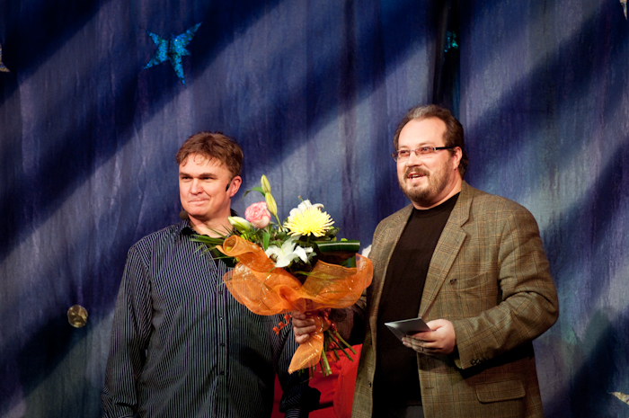Нужно ли говорить, что зрительный зал оказался заполнен под завязку? Посмотреть на своего любимца пришли и стар, и млад. Обошлось, правда, без самых маленьких посетителей этого театра, ведь им только предстоит оценить кропотливую и творческую работу того, кто в этот вечер принимал поздравления. А вот среди взрослых желающих сказать добрые слова оказалось не мало: за свои 45 лет Валерий Скиданов приобрёл множество друзей и поклонников как из числа первых лиц, так и коллег по цеху, а также простой публики. 18 лет на сцене — дата вроде не круглая, зато сколько зрителей побывали в гостях у кукольной сказки? Те дети, которые приходили на первые спектакли Валерия Михайловича, уже выросли и приводят сюда уже своих малышей.