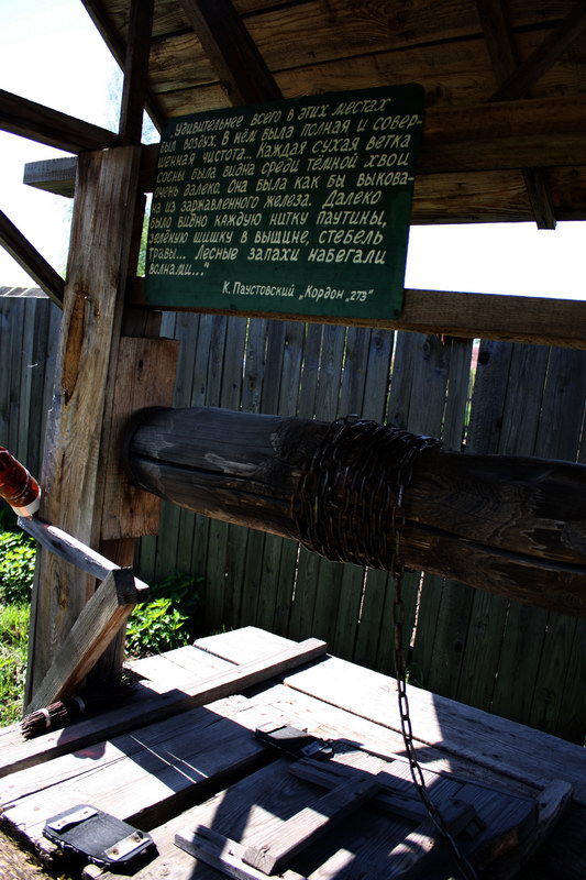 Если шагать напролом, то совсем скоро дорога выведет вас (как и нас) к узкоколейке, точнее к тому, что от неё осталось (смотрим на карте пункт №3). Сегодня это длинная прямая песчаная дорога сквозь болота и деревни. Если не замечать накатанную колею, а держаться курса бывшей железной дороги, то можно спотыкнуться о шпалу и подобрать на сувенир проржавевший костыль. А если иметь при себе карту и немного воображения, то можно на месте прогнивших свай представить станцию Летники. Трудно поверить, но жители мещёрских деревень ещё помнят, как на службу ходили путевые обходчики, бригадиры путейской бригады, стрелочники. Многие мечтали работать на этой железной магистрали, управлять маленьким оранжевым тепловозиком….