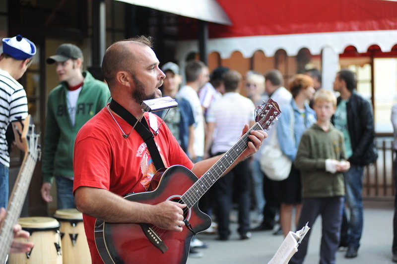 — Намного приятнее поблагодарить настоящего музыканта за его собственное творчество, чем дать на пиво подросткам, которые не в склад горланят «Всё идёт по плану», — делится мыслями рязанец Сергей Колосов, который считает, что выступления уличных музыкантов на Подбелке — это частое явление, но гораздо реже здесь можно встретить что-то стоящее в музыкальном плане.