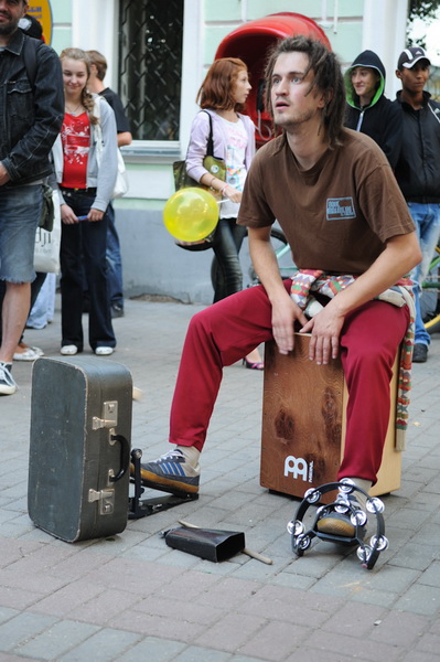 Надо сказать, что организаторы не ограничились задорными трубадурами, добавив в программу немного «другой» музыки. Арт-рок и фолк-направления представили группы «Наяву» и «Дубрава». Их творчество, конечно на любителя, но тем не менее свои слушатели нашлись и тут. причём их было не так уж и мало… Как и положено уличным музыкантам, которые тусуют на Подбелке, каждый выступающий не преминул притащить с собой шляпу или использовать футляр от одного из своих музыкальных инструментов с вполне благородной целью — дать возможность публике куда-то положить лишние деньги. Многочисленные гости фестиваля к этому отнеслись весьма положительно, шапки и футляры артистов ломились от банкнот и монет.