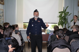 Соболев познакомил ребят с биографией и деятельностью прославленного моряка, рассказал об огромной работе, проделанной Домахиным по увековечиванию памяти вице-адмирала. Именно по его инициативе и благодаря его усилиям в 1996 году в рабочем посёлке Старожилово одна из улиц названа в честь Головина, а в сентябре 2006 года там установлен памятник вице-адмиралу. Это первый в России памятник нашему земляку. Домахин рассказал о работе Старожиловского клуба моряков «Диана», председателем которого он является, поделился творческими планами на будущее, ответил на вопросы студентов. В заключение беседы музею была передана в дар книга о Домахине. «Как моряк моряку памятник ставил».