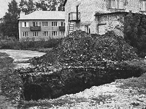 Судя по всему, земельные работы здесь проводили ещё работники «Жилкомсервиса». Сейчас за водопровод отвечает другая организация. Кто должен закопать котлован — на эту тему можно спорить долго, но почему не принимает меры администрация поселения? В любом случае подобные раскопки должны хотя бы огораживаться, обозначаться флажками или чем-либо другим. Конечно, администрации поселения нужно заботиться и о благоустройстве центральных улиц, но не стоит ограничиваться лишь «подсчётом сорняков», выросших у того или иного забора».