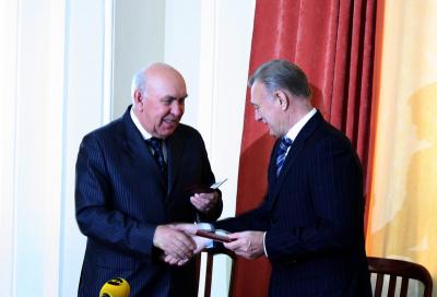 На торжественной церемонии рязанский губернатор был награждён орденом за заслуги перед ДОСААФ России второй степени, а также получил членский билет почётного члена ДОСААФ.