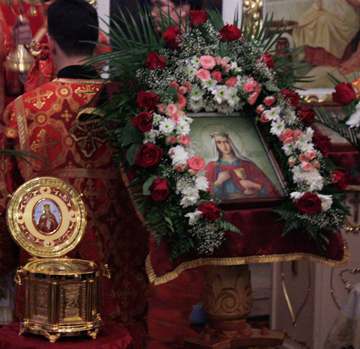 По заамвонной молитве Павел и сослужащие ему совершили молебен перед мощами великомученицы Варвары, которые по благословению митрополита Павла пребывают в обители. После богослужения Павел поздравил игумению обители Варвару (Самарину) с днём тезоименитства, пожелав ей здоровья и помощи Божией в управлении монастырём, а также подарил икону Божией Матери, именуемую «Всецарица».