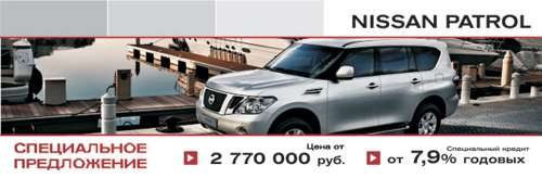В дополнение к специальной цене на автомобили 2011 года только действуют уникальные дилерские условия на приобретение автомобиля Nissan Patrol. Узнайте размер ваших персональных привилегий у менеджеров отдела продаж автосалона «МегаАльянс» по адресу: Рязань, Московское шоссе, 24. Телефон отдела продаж: (4912) 293-070; кредитно-страховой отдел: (4912) 293-072; отдел трейд-ин: (4912) 503-555.