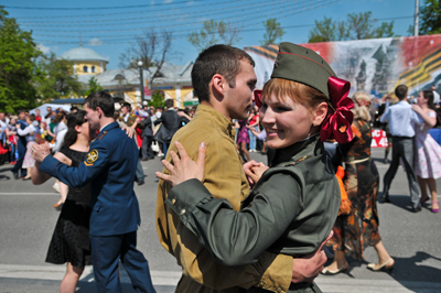 В Рязани 9 мая в рамках празднования 67-й годовщины Победы в Великой Отечественной войне на площади Ленина прошёл Губернский бал «Вальс Победы». На балу под открытым небом были представлены фигурный вальс, краковяк, три кадрили, полька-тройка, регтайм, танго и русский лирический танец. Основным лейтмотивом одежды стали наряды конца сороковых годов прошлого века. Юбки укоротилась до коленей, а женская талия чётко обозначилась с помощью широкого пояса. В ассортименте одежды преобладали платья-костюмы и жакеты, блузки, юбки прилегающего и расширенного книзу силуэта и короткой длины. Кавалеры были одеты преимущественно в военную форму той эпохи или современные мундиры.