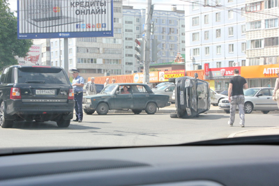 На улице Горького опрокинулся автомобиль