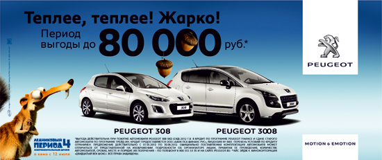 *Выгода действительна при покупке автомобиля Peugeot 308 SKD (СКД ) 2012 года в кредит по программе Peugeot Finance и сдаче старого автомобиля по программе трейд-ин. Кредит предоставляется ООО «Банк ПСА Финанс Рус», лицензия №3481. Перечень условий по кредиту ограничен. Официально поставляемая комплектация может отличаться от представленной на изображении. Предложение действительно с 01.05.2012 по 30.06.2012. Подробности об организаторе акции, правилах ее проведения, количестве автомобилей, сроках, месте и порядке их получения ― по телефону (4912) 95 55 51 а также в официальном дилерском центре Peugeot автосалоне «Ле-Ман».
